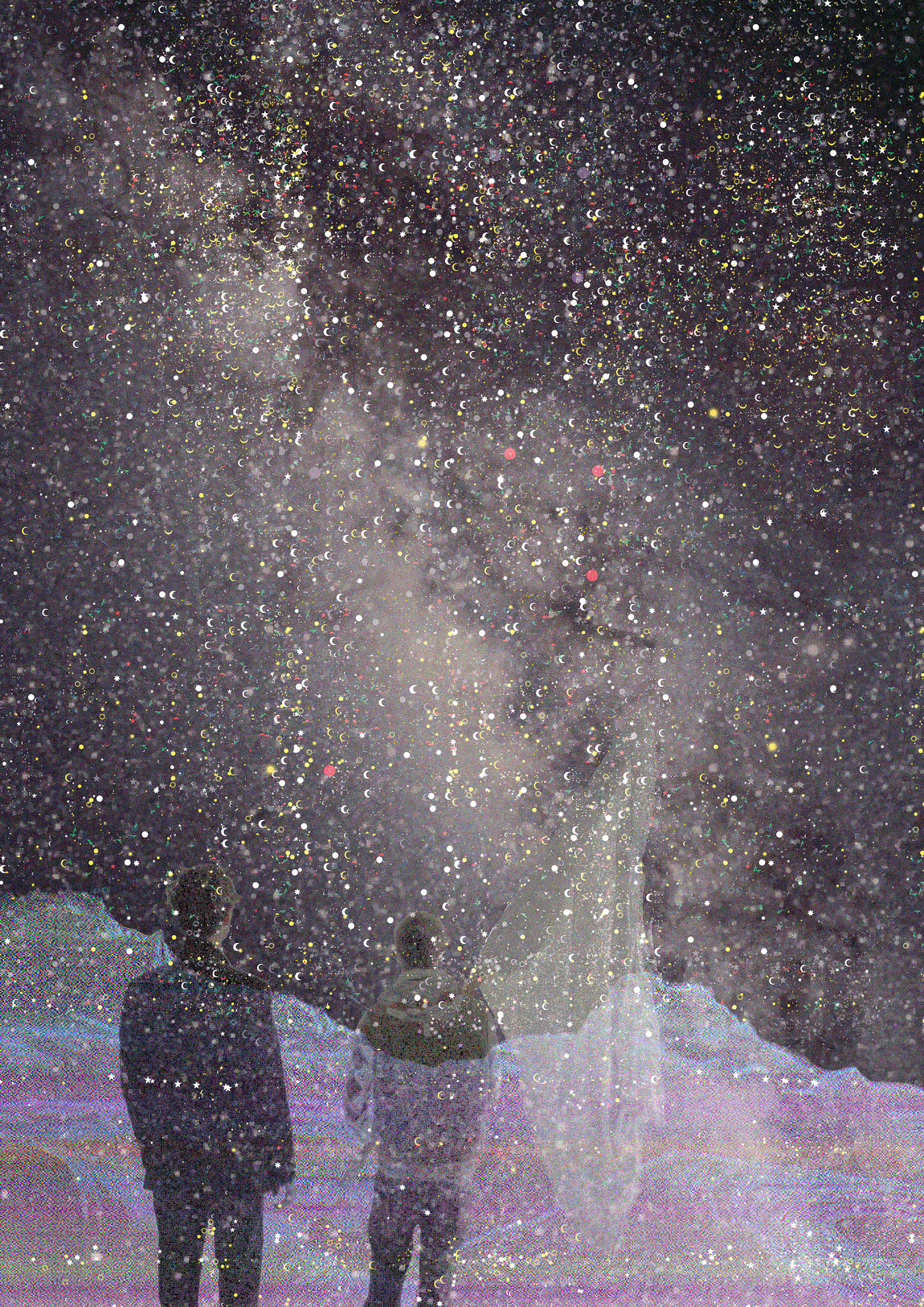 Every earthly power seeks its symbols in the same cosmos. "There is something curious about the national flags of the planet Earth. The flag of the United States has fifty stars; the Soviet Union and Israel, one each; […] Many Islamic countries display crescent moons. Almost half of our national flags exhibit astronomical symbols. The phenomenon is transcultural, non-sectarian, worldwide. […] We seek a connection with the Cosmos. We want to count in the grand scale of things." – Carl Sagan. This piece uses the cosmos symbols from flags and relocates them back into the cosmos forming a new galaxy. 2 figures are waving the white flag of surrendering to the grand scale of things. Symbolic logic researches symbols and replaces them to their original context or usage. Symbolic logic has currently 3 running projects.