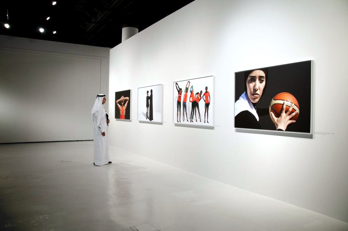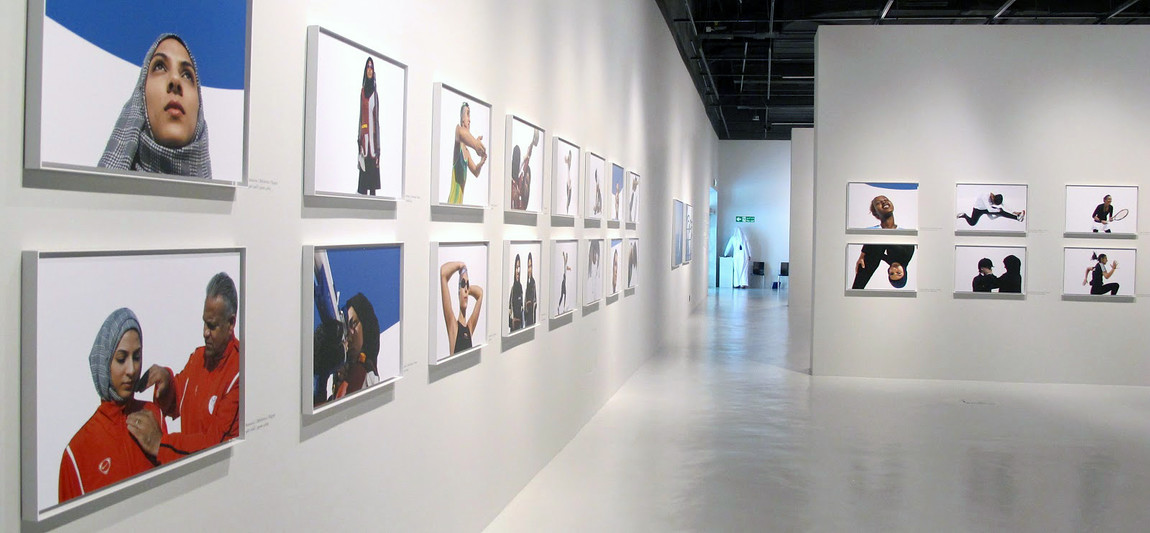 Hey'Ya! (Let's Go!) was presented at Sotheby's London during the London Olympics of 2012. The exhibition presents photographs of a group of woman athletes from Arab countries in a wide range of sports. The photographs display the athletes issues with complying with standard dress-codes in sports because of their cultural and religious contexts. The branding of Hey'Ya! refers to well-known sports visuals from the current and past to show the contrast between the Athletes ambitions (the brand) and their reality (the photographs). The brands connects the exhibition and publications throughout Sotheby's London, Harrods, and QMA Qatar.